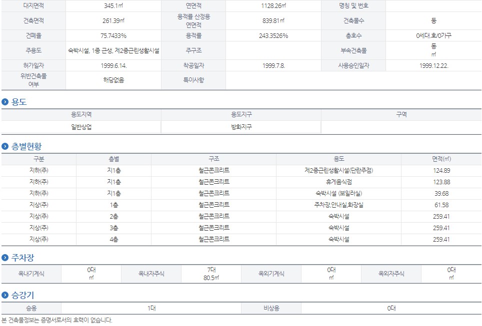 | 건물구조 | 층수 | 4 층 | ||